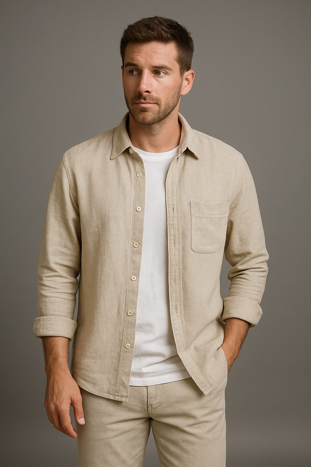Das Doha-Leinenhemd ist für Männer gemacht, die einen raffinierten Stil mit einer entspannten Note lieben. Es ist aus erstklassigem Leinen gefertigt und bietet eine leichte, atmungsaktive Passform – perfekt für Anlässe bei warmem Wetter, lässige Eleganz und raffinierte Lagenlooks.